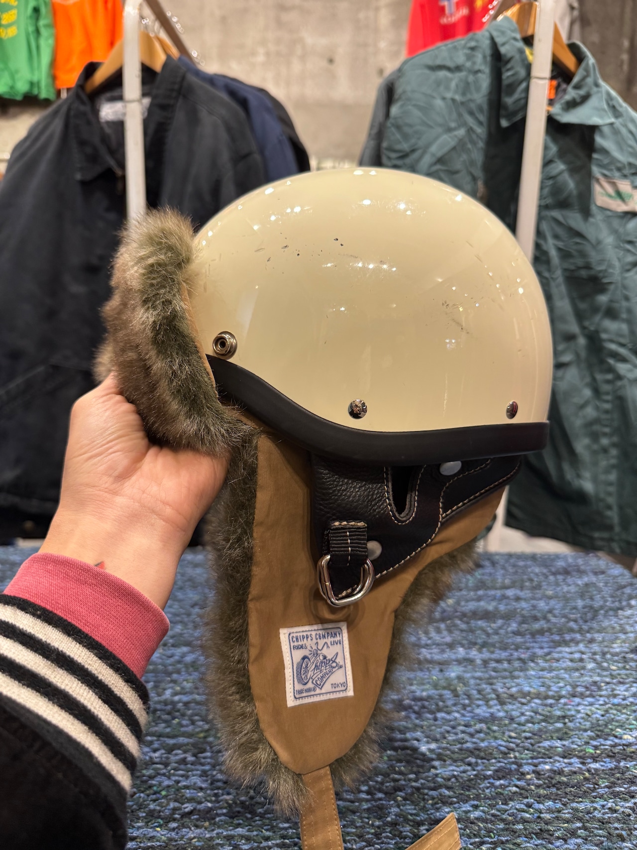 ヘルメットの下に忍ばせることで、防寒性を高めるだけでなく、取り外したあともそのままスタイリングの一部として楽しめます。