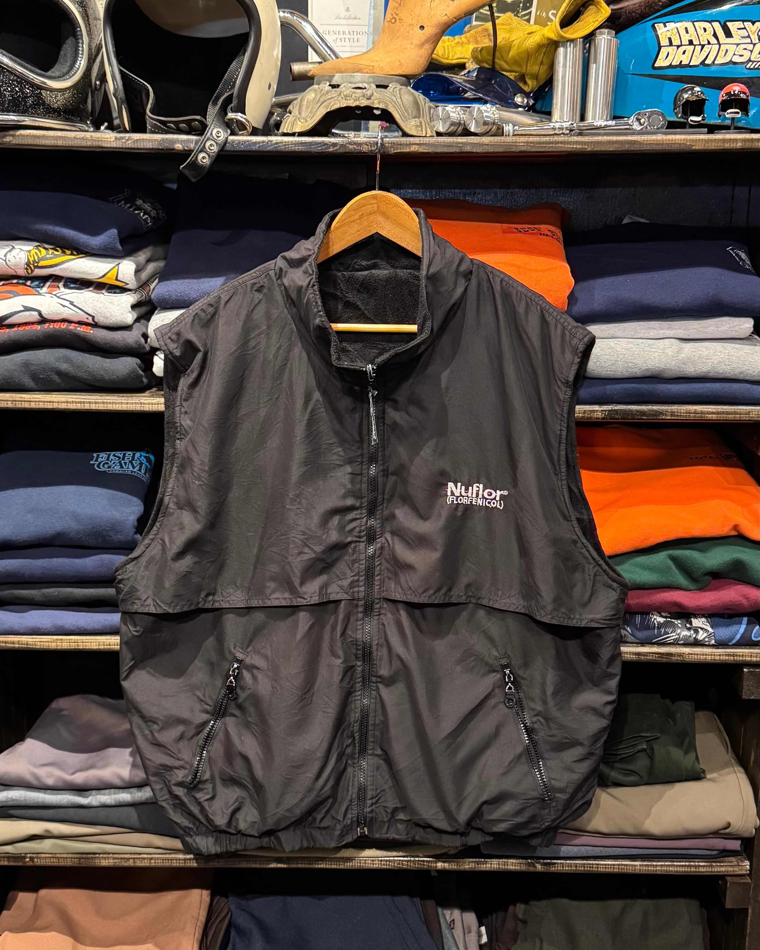nylon×fleece embroidery vest